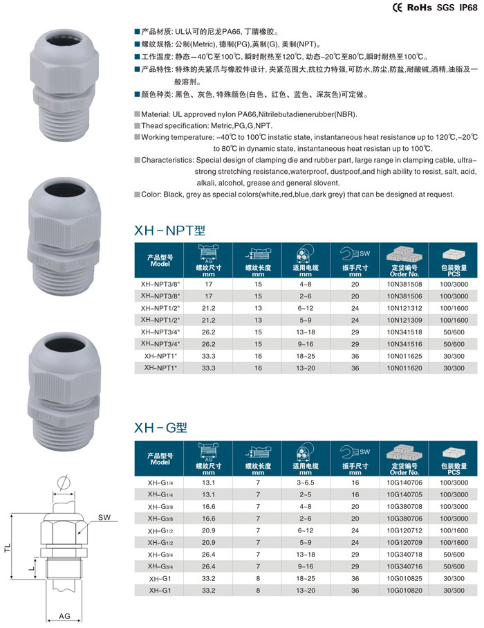 產(chǎn)品材質(zhì):UL認(rèn)可的尼龍PA66,丁腈橡膠